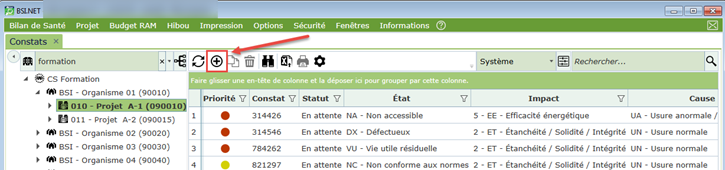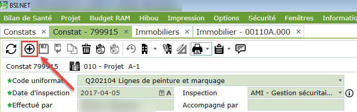 Lorsqu'il est question d'utiliser la valeur de l'inspection, celle-ci doit être au statut "Démarré", "Rapport BSI à produire" ou "En retard".