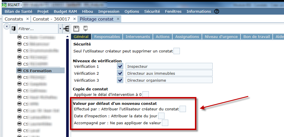 Dans le pilotage des constats pour le centre de services, il est possible de forcer l'ajout de données par défaut en cochant les cases désirées (voir image plus bas).