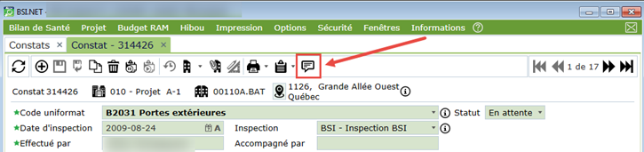 Cette fonctionnalité permet d'ajouter des communications (sous forme de notes) dans un constat permettant d'informer un autre intervenant d'une situation ou particularité concernant le constat.