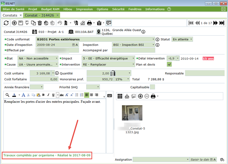 Un exemple de fonctionnalité serait de permettre à un organisme d'informer l'inspecteur de la réalisation des travaux requis pour un constat. Ainsi, l'inspecteur peut obtenir les renseignements nécessaires, à même l'application BSI.NET, et indiquer à son tour que les constats sont complétés.
