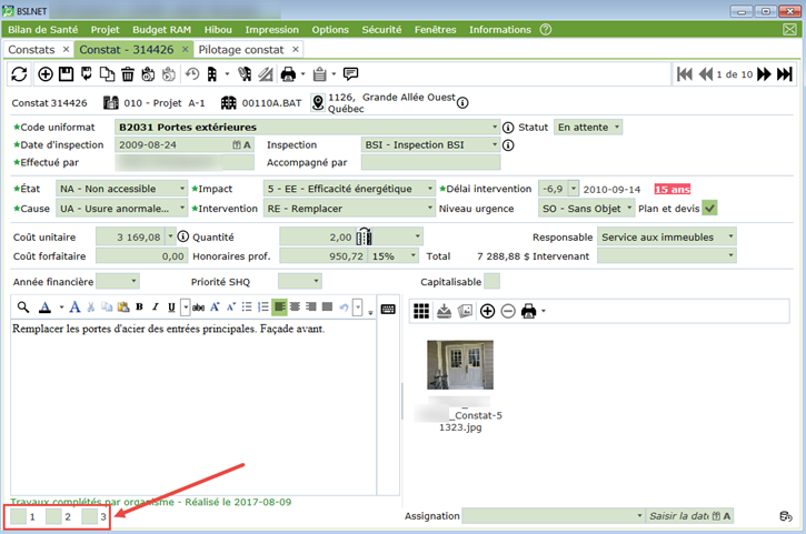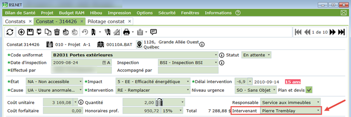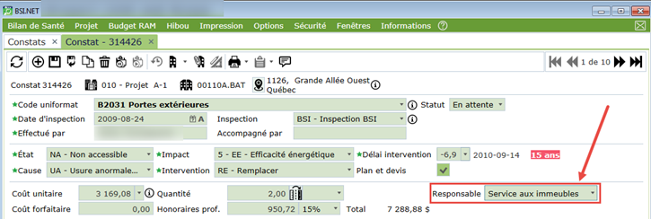 Le responsable permet d'identifier les services ou départements responsables de l'évaluation et du suivi du constat. Par exemple, nous pourrions y retrouver des valeurs telles que "Service des immeubles" ou encore "Service au locataires".